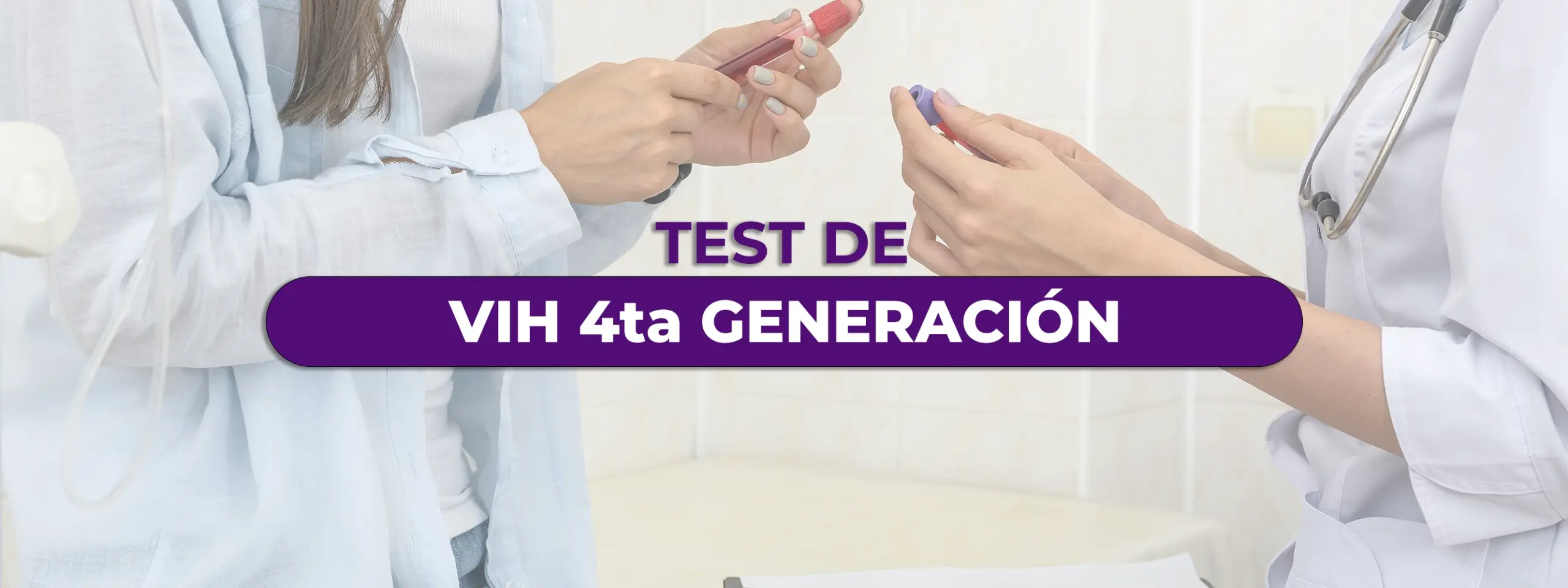 Test de VIH de calidad sobre el virus en sus dos variantes, examen de inmunoensayo cromatográfico de 4ta generación capaz de detectar el antígeno P24, proteína de estructura viral, y detectar el anticuerpo (Ab) frente al virus del VIH en muestra de sangre.